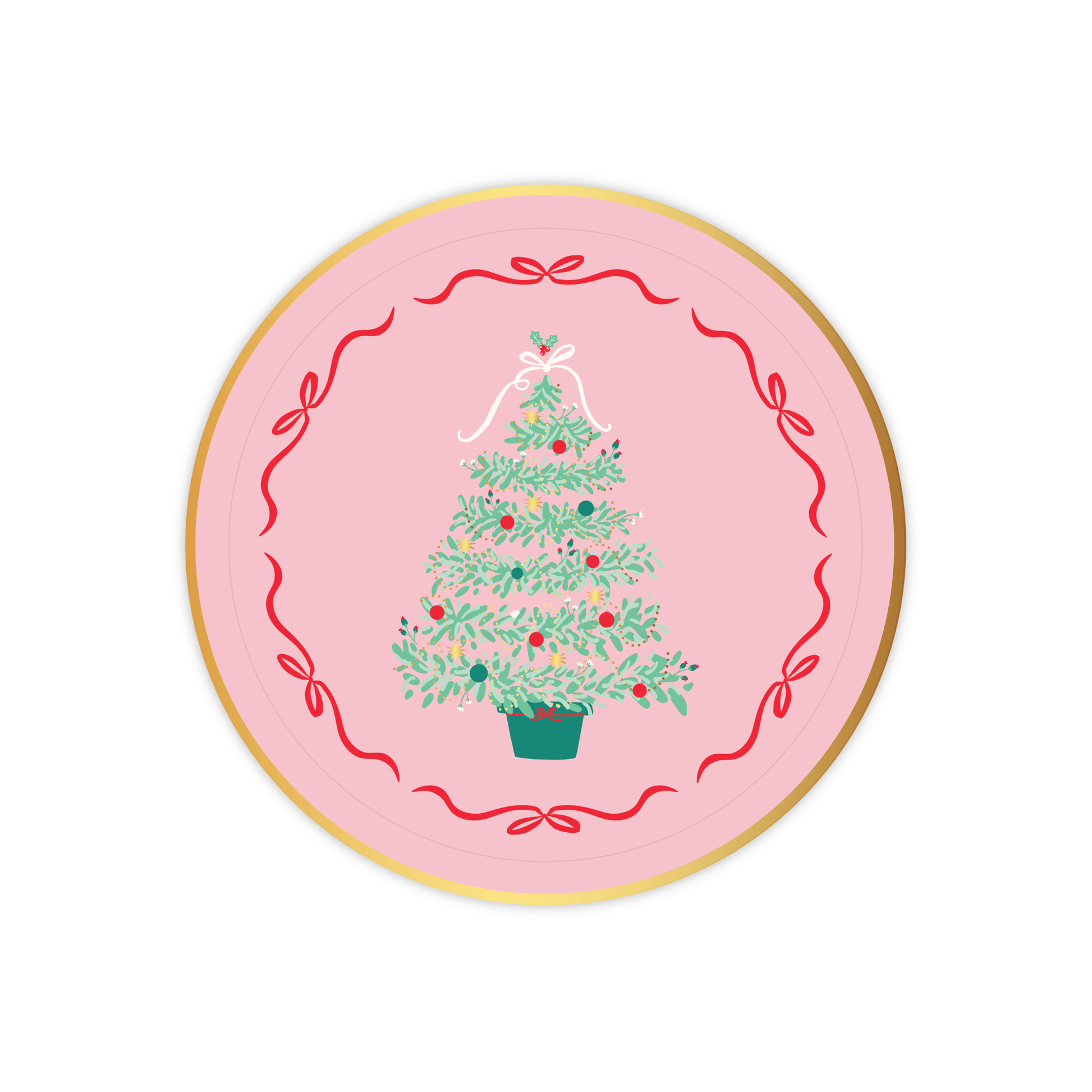 Add charm to your holiday table with our Pink Christmas Tree Dessert Plates! Featuring a delicate tree design with a festive red bow border, these plates beautifully complement our Christmas Plaid Dinner Plates.