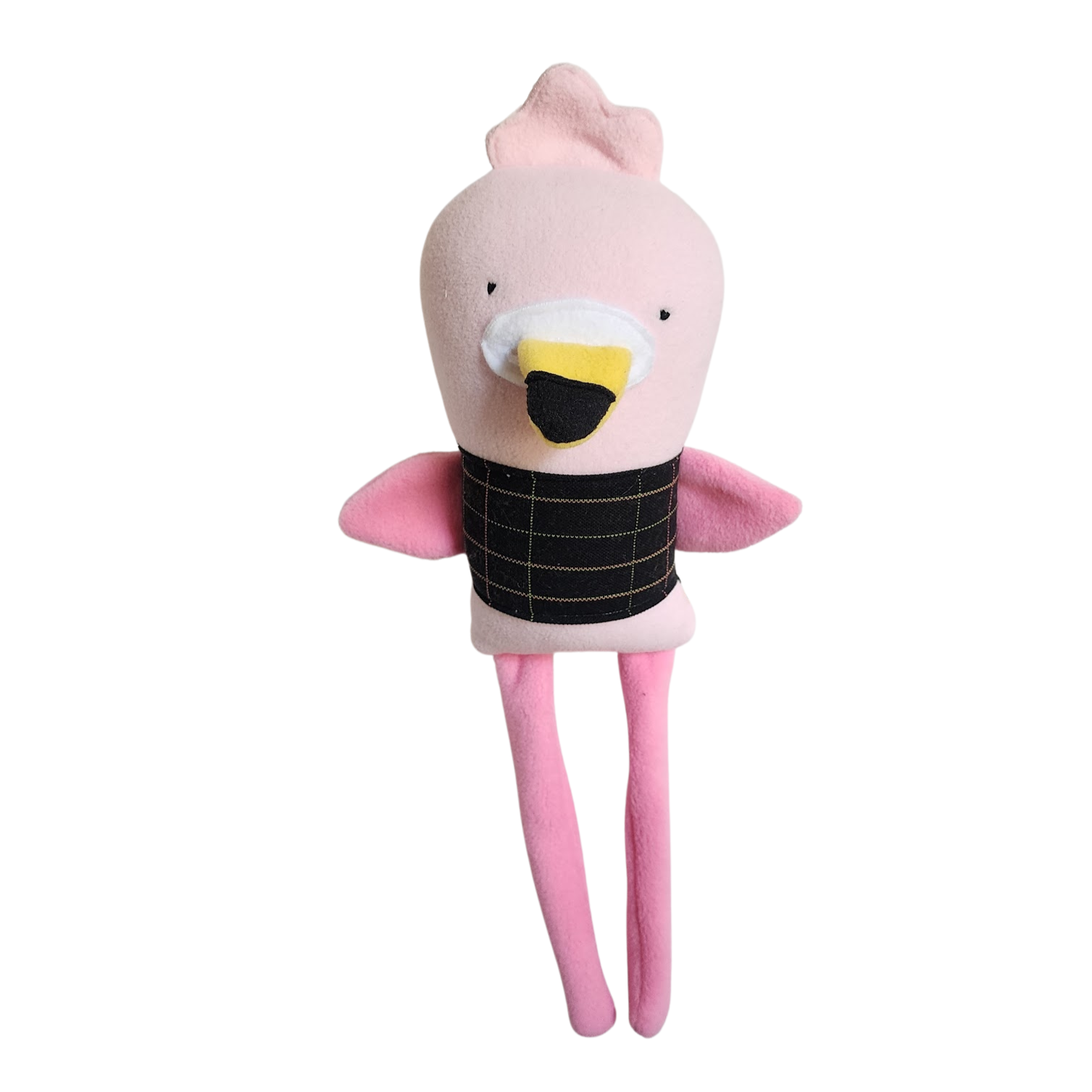 Fred measures approximately 18" long and is made with durable anti-pill fleece and recycled fabric for his top. He has a bio tag wrapped around his neck sharing all about him. His eyes are hand embroidered and he is stuffed with cluster stuff to make him extra snuggly.