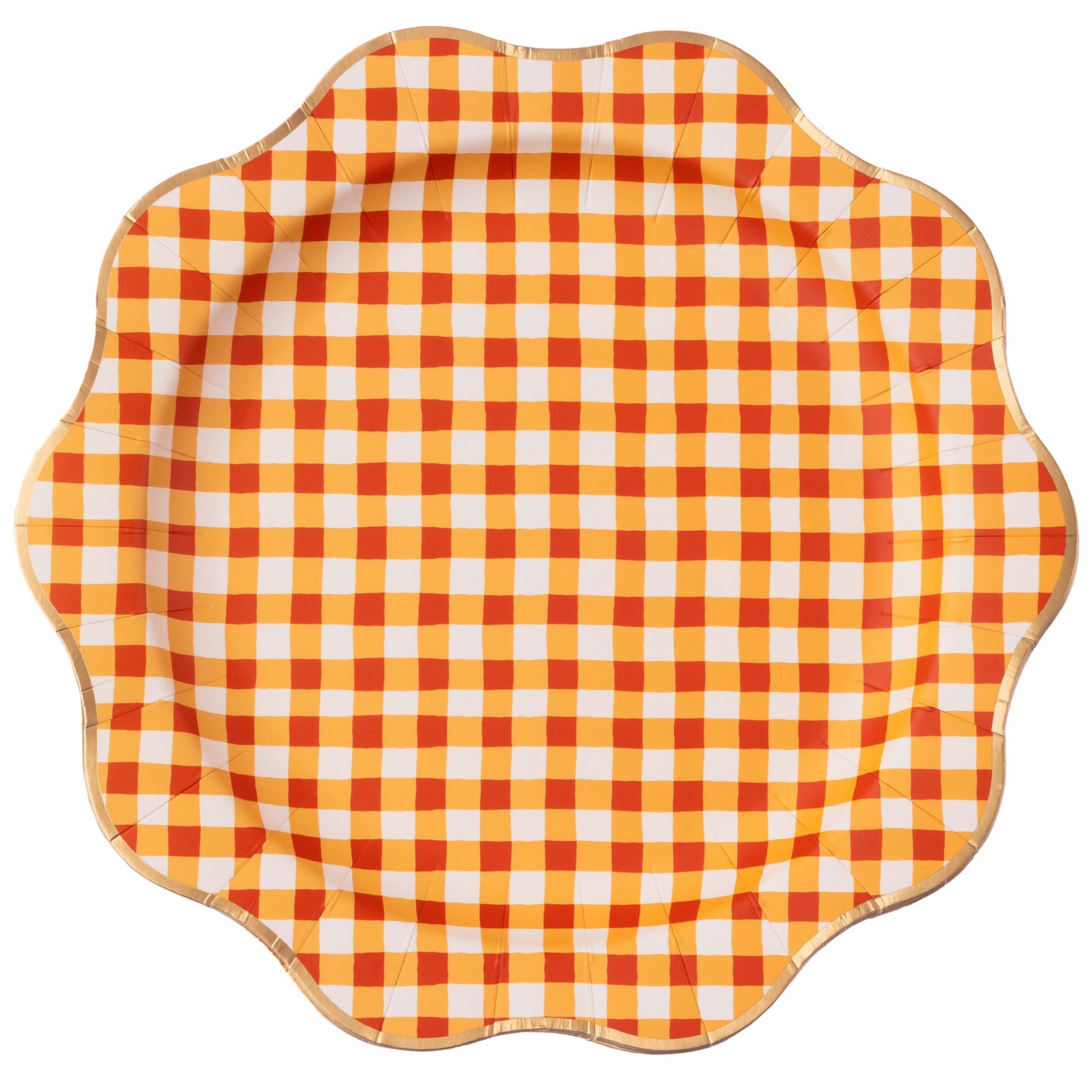 Elevate Thanksgiving with our Elegant Fall Plaid Dinner Plates. Featuring a gold foil rim and charming orange gingham design, these plates create a cozy atmosphere for holiday feasts. A must-have for seasonal collections, they blend style and functionality, ensuring every table radiates warmth and elegance!