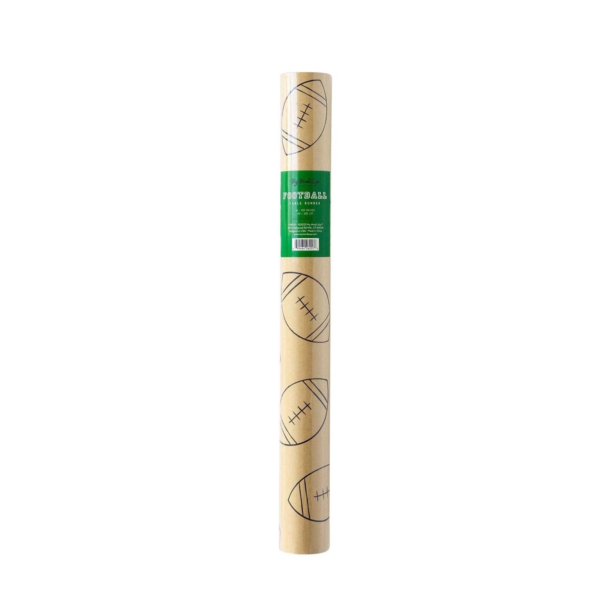 Step up your tailgating game with this football inspired table runner. Featuring a fun football design printed on kraft paper, this table runner is the perfect addition to a tailgate feast or showing team spirit at the booster fundraising table at your school's next football game!
